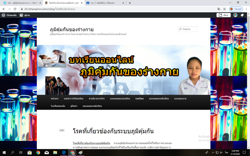 ภูมิคุ้มกันของร่างกาย วิทยาศาสตร์ พระบางวิทยา บทเรียนออนไลน์ คอมพิวเตอร์